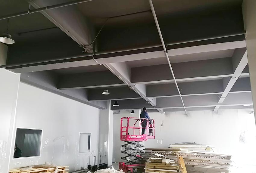 E.车间装修工程 顶面 隔断 地面 油漆 动力电桥架 气管 成品安装