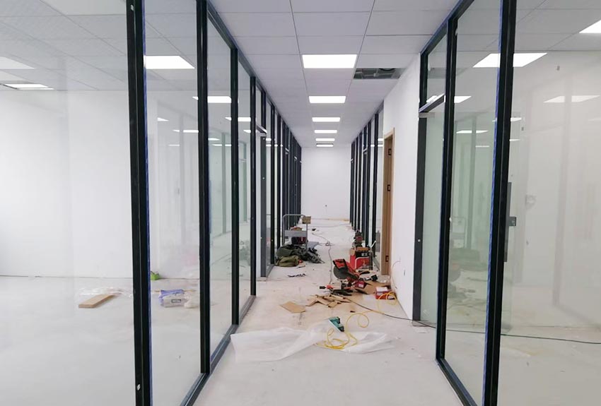 B.办公室装修工程 顶面 隔断 地面 水电 油漆 新风 成品安装