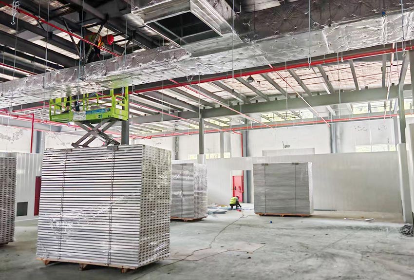 D.车间装修工程 顶面 隔断 地面 油漆 动力电 桥架 气管 新风 成品安装